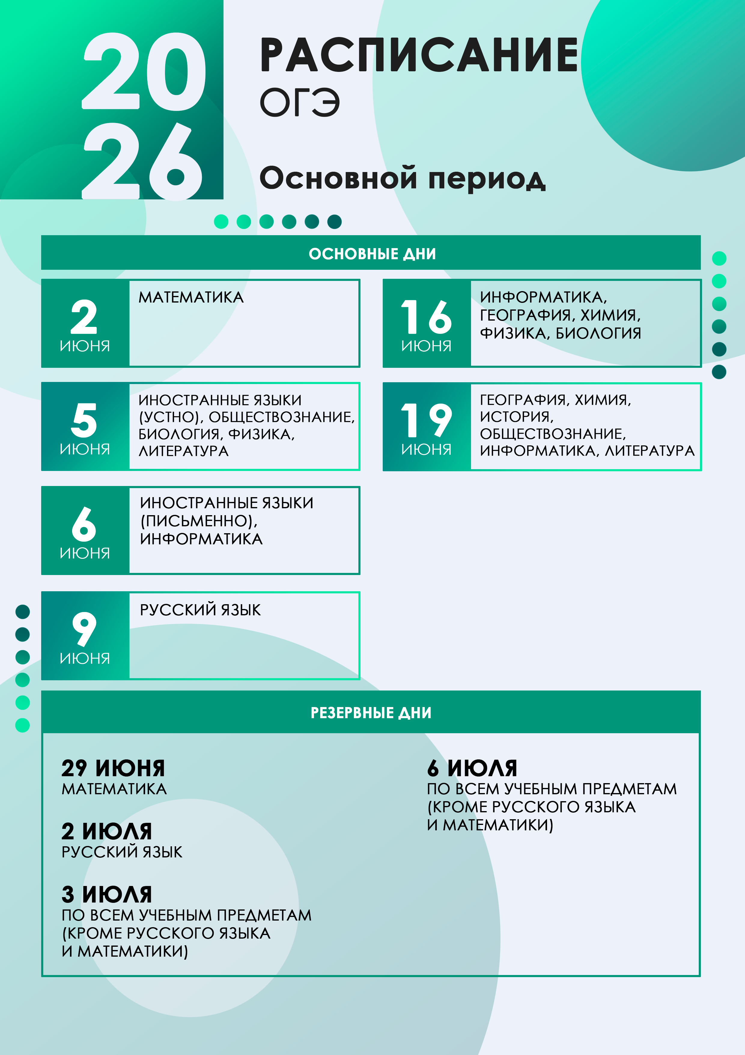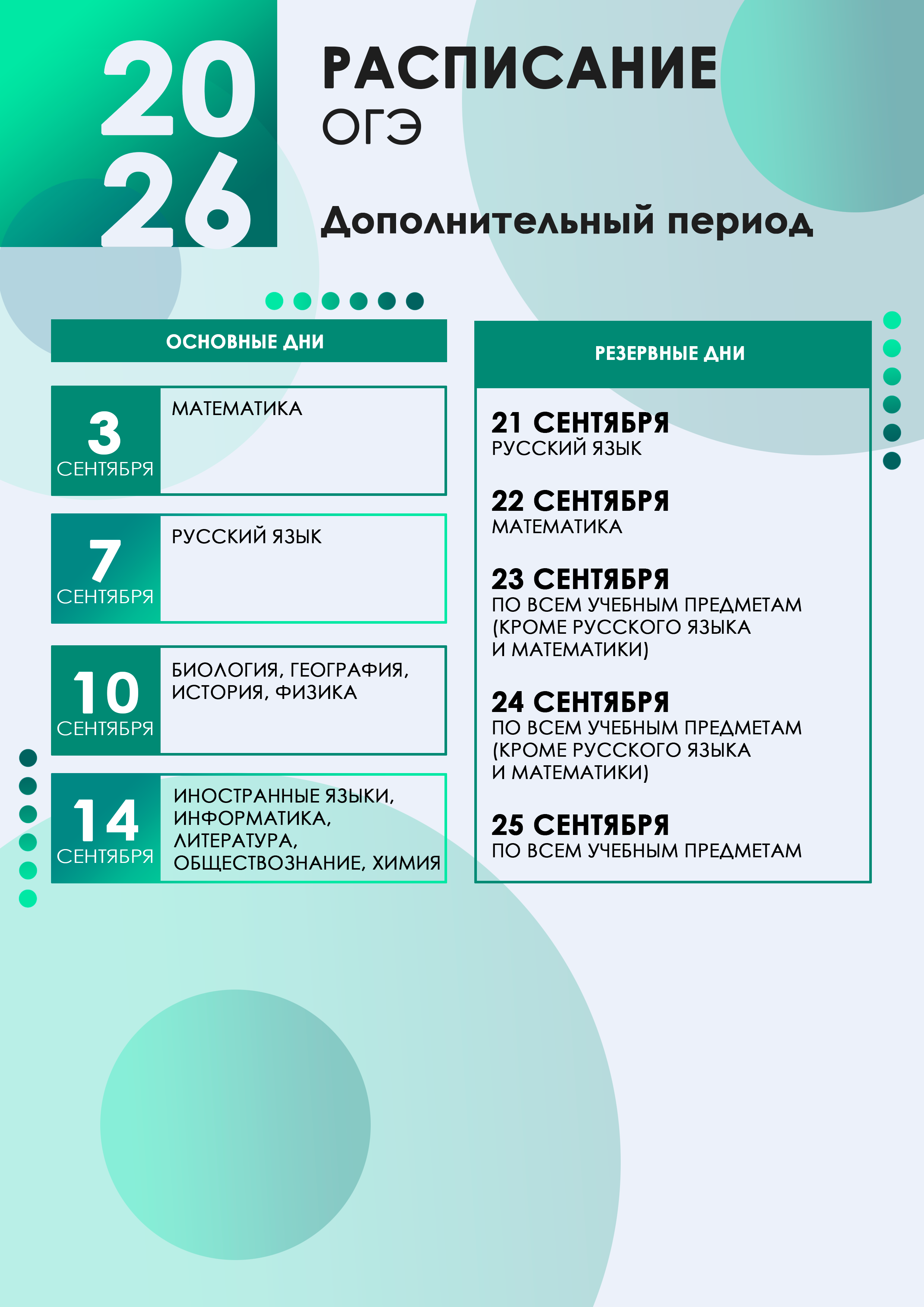 Проект расписания ОГЭ в 2025 году