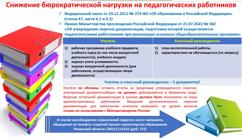 Телефоны «горячей линии» по вопросам документационной нагрузки на педагогических работников:+7(4862) 43-00-83,+7 (4862) 43-00-82,+7 (4862) 59-85-28.